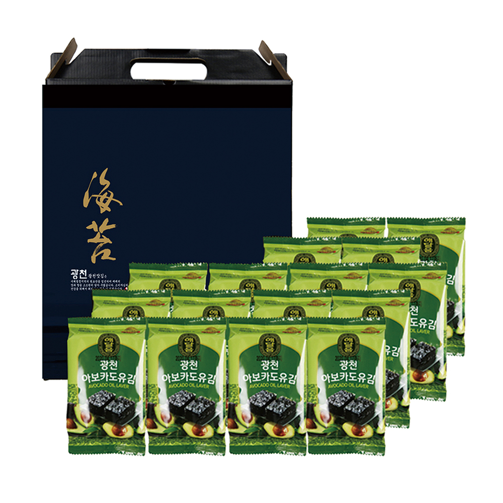 아보카도유 도시락김 16봉, 대량 선물에 적합한 구성. 임직원·단체 선물로 좋으며 부피 대비 높은 만족도 제공. 단체 답례나 사내 행사, 복지용 물품으로 채택하기 쉬운 실속형 프리미엄이다.